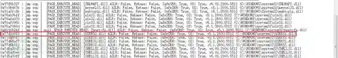 4.现有模块的JMP ESP指令使用User32.dll对应的地址7E3C56F7,但该模块是基于Windows XP Profesional SP3 Spanish x86编写的,在这里西班牙语的XP显然是不适用的。于是在ImmunityDebugger中使用命令!mona jmp -r esp查询合适的跳转指令,mona查询的结果保存在文件jmp.txt中,这里我们选择