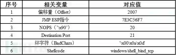 在上述结果中并没有看到shellcode的内容,20个空指令’\x90’之后的\x0D\x0A代表的是 ‘\r\n’(“<回车><换行>”),并不是shellcode中的部分字符,因此可以判定’\x00’为坏字符。