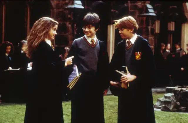 在电影拍摄时,罗琳要求主角们必须由英国或爱尔兰人出演,一手推动了英国境内的演员海选工作,三人组的演员里艾玛·沃特森和鲁伯特·格林特几乎是完全的影视新人,男主角丹尼尔·雷德克里夫在出演哈利·波特之前,也只有过一次荧屏经历。