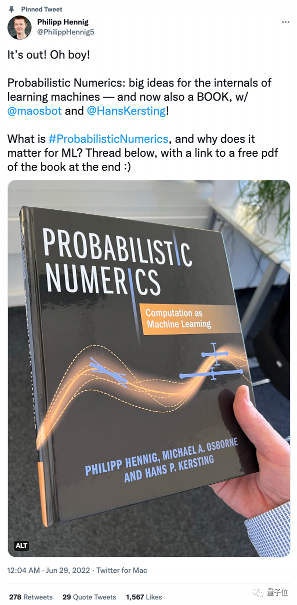新书发布后,作者之一Philipp Hennig在推特上感叹:它终于出来了。