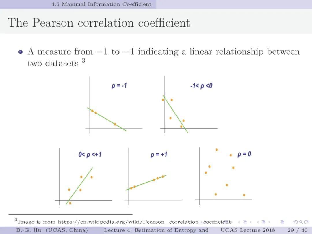 第30-37页: 我认为MIC方法给出了信息论中互信息定义扩展应用与估计方法创新的典型样例。他们首先发现现有指标应用中的问题,然后提出基于信息论为基础思想的指标,再后对这个指标提出需求满足两个启发式属性。这是一种顶层的先验知识。我们将其称为“元准则”,即关于准则之上的准则。最后是发展了具体MIC方法并从数据实验中表明该方法是基本符合两个启发式属性。希望读者能够从从这个研究样例中“悟”出一种个人总结的方法论?
