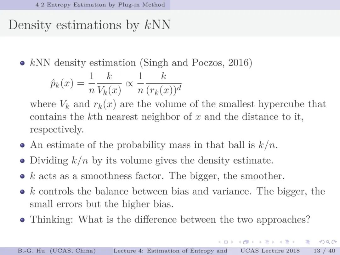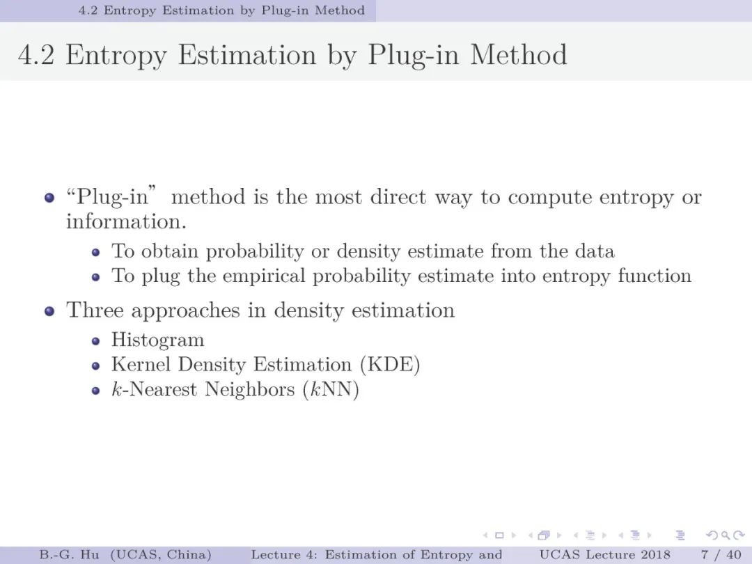 【导读】在信息论或机器学习教学中,通常不包含熵估计内容。由于现代通讯应用中是数字通讯,对于离散随机变量,熵估计方法成熟,因此不是问题。而在机器学习或大数据处理中,大量数据是以连续随机变量方式出现(如图像、语音等)。而对连续随机变量及其混合随机变量,目前熵估计仍然处于方法研究发展阶段。机器学习传统教学中会包括分布估计,而不包括熵估计内容。我们知道熵估计类似于随机变量分布估计,需求大量且在低维数据中方可获得较好的近似解。熵估计或分布估计均属于“生成式(discriminative)学习”,一般会比“判别式(generative)学习”更难于处理,且预测结果误差更大。熵估计可以被认为是信息论与机器学习“综合”中的最大障碍。而这些障碍有些是本质性的,比如高维数据情况下的维数灾难(Curse of Dimensionality)问题。当估计结果很差时,基于信息论机器学习方法将不可能有效。比如对同样一组数据,应用不同估计方法或不同内部参数会有很大不同结果。因此可以认为基于信息论机器学习中,熵与其它信息量估计是关键性的基础问题。因此本教学中,增加该章为独立内容。我们认为对抗网络(GAN)中的“生成式”方法结合“判别式”方法是赋予智能机器进化功能中的重要学习方式,其中信息论会扮演重要角色(想想为什么)。该章是讲解熵与其它信息量估计这样基础问题与必要知识,由此也可理解为什么近年来这个主题研究开始活跃起来。