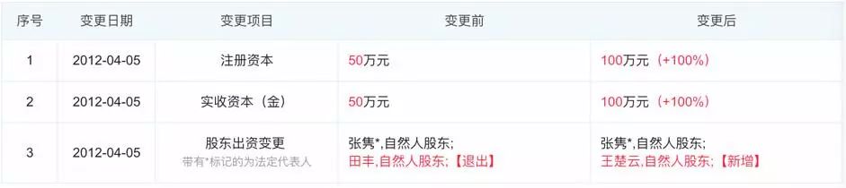 几乎同时,达人天下增加注册资本并将公司股东由张隽、田丰变更为张隽、王楚云。