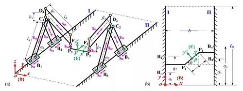 中国科学院宁波材料技术与工程研究所先进制造技术研究所精密运动与先进机器人团队最新设计的四自由度并联机器人,可以实现 3T1R 四个自由度的运动,是少自由度并联机器人的创新设计之一,其主要特点为2条相同支链通过被动转动副连接到动平台上,且每条支链有2个相同分支通过安装在基座上的移动副作为驱动。为进一步分析机构特点,采用螺旋理论验证了该机构自由度的数目及机构的运动学特性,得到了其位置的封闭解,根据机构的运动学特性和构型特点,该机构位置正解的封闭解最多有8组解,位置反解最多有4组解,结果表明,运动学分析简单是此并联机器人的特点之一。此外,具有构型对称、工作空间大、速度快且定位精度高的特点。相比于传统的并联机器人而言,它能够实现 XYZ 三个方向的运动与一个绕Z轴方向的转动,且在驱动方向工作空间可依作业需求扩展,增大了工作空间的范围。
