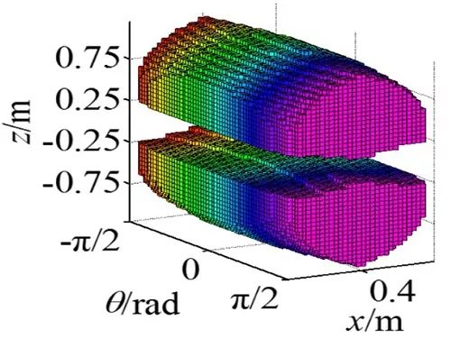 该并联机器人样机的每个支链采用了一定子两动子的高精度直线电机作为驱动机构,结构简单且电机定位精度达到微米级,此外,通过高强度的碳纤维复合材料作为支链的主要材料,有效降低了移动件的重量;控制系统采用了 ABB 的驱动器,通过 PowerLink 总线进行同步控制;通过基于运动学的离线轨迹规划算法,该机构的运动学目前该样机可达到 XYZ 三个方向的平动及绕Z轴方向的转动,移动范围分别是0.3 m 、1.2 m 和0.2 m ,其最大运动速度达到了1.6 m/s ,末端定位精度约为1 mm ,绕Z轴方向的转动可以达到±120°,能够广泛应用于柔性化工厂的包装、分拣等工序,具有很好的应用前景。