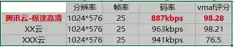 图注:极速高清在 VMAF质量稍微有优势情况,码率比友商少 8%-10%左右。