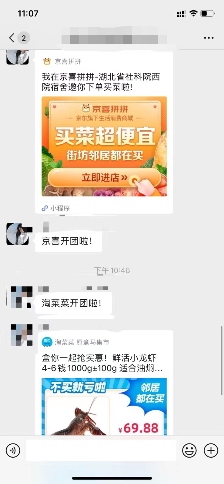 紧接着回到家,他要开始准备开团,将链接分享到社区大群里。