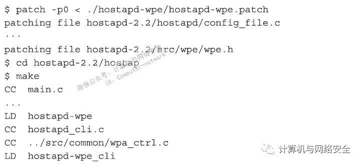 (3)现在,应用hostapd-wpe补丁,并在整个工程中编译连接一下。