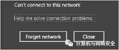 由于缺少相互的认证,所以这也是Windows系统中客户端的窗口显示连接断开的主要原因。走到这一步,现在Windows用户也不知道什么地方出了差错,他同样还是会看到之前出现过的那个“无法连接到该网络”(Can’t connect to this network)对话框。