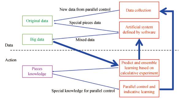图2 基于ACP方法的智能机器系统框架. A:人工社会,C:计算实验,P:平行执行