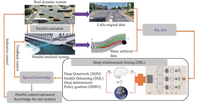 本文首先介绍CPSS定义和基于人工社会(Artificial societies)、计算实验(Computational experiments)和平行执行(Parallel execution)智能机器系统。随后,提出了基于CPSS的平行驾驶框架,融合物理世界、精神世界和人工世界,并详细论述了平行测试、平行学习以及平行增强学习等方法,它们在智能网联汽车的感知、决策与规划和控制等关键模块中都有巨大的应用潜力。
