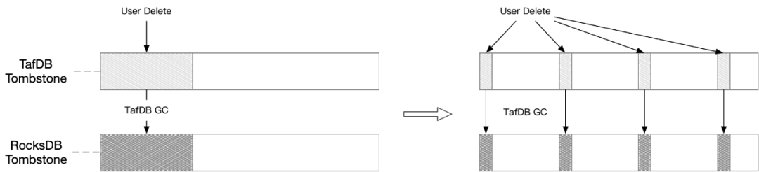 为了解决这个问题,即缩短连续垃圾数据区的长度。我们将数据删除的压力分散开,将垃圾数据区拆成多个小片;同时增强单点处理垃圾数据的能力,缓解其对范围查询的性能影响。