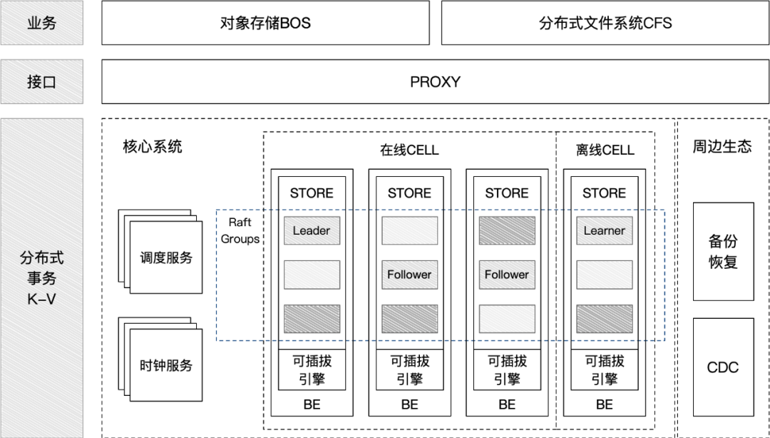 TafDB 是面向元数据场景设计的一个分布式数据库系统。作为百度沧海·存储统一的元数据底座,TafDB 支撑了百度智能云对象存储 BOS 和文件存储 CFS 的元数据存储,提供了万亿级别元数据规模、千万级别 QPS 的元数据存储能力。