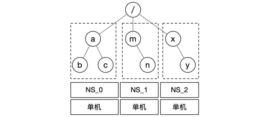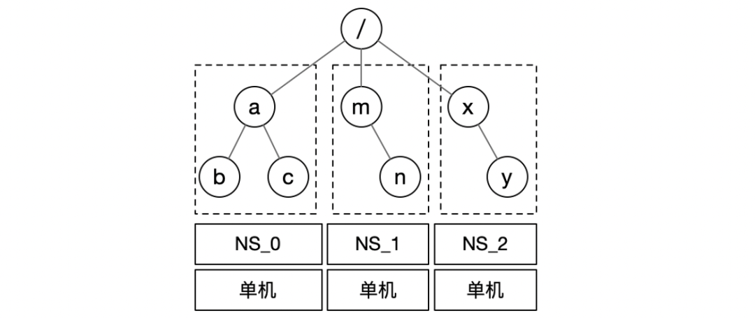 基于子树划分:该架构方案通过将层级目录树拆分成多个子树,并将每颗子树按照相应的负载策略部署到不同的 Meta 节点中,但缺点是容易产生热点,负载均衡难以实现,扩展性不够好,同时难以做到跨子树的 Rename,典型的实现如 HDFS Federation、CephFS、IndexFS。