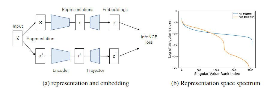 对比学习中的projector对于防止表征空间中的维度崩溃至关重要,基于这个理论,研究人员提出:
