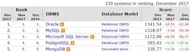 截至2017年12月,在DB-Engines上排名的数据库引擎已多达361种。