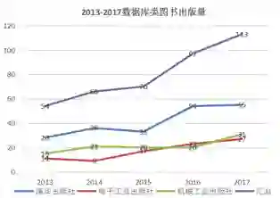让我们先来看看近几年国内几家出版社的数据库类图书出版量(如图6),可以发现,数据库类图书虽然在总出版量中占比不大,但还是有逐年上升的趋势,这其中大数据与数据分析类图书占据了相当大一部分,而数据库理论类图书则较低迷。