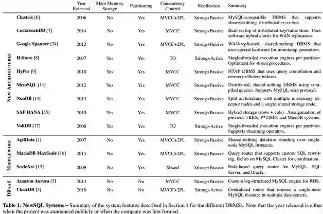 3. NewSQL的一个特征是支持混合数据类型存储,如Spanner支持NoSQL也支持关系存储模型。而支持关系模型将是NewSQL系统的一个重要特征。