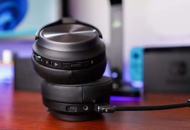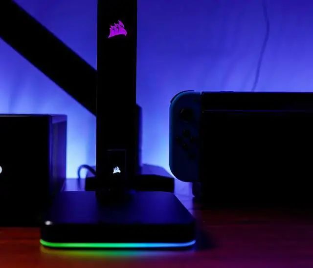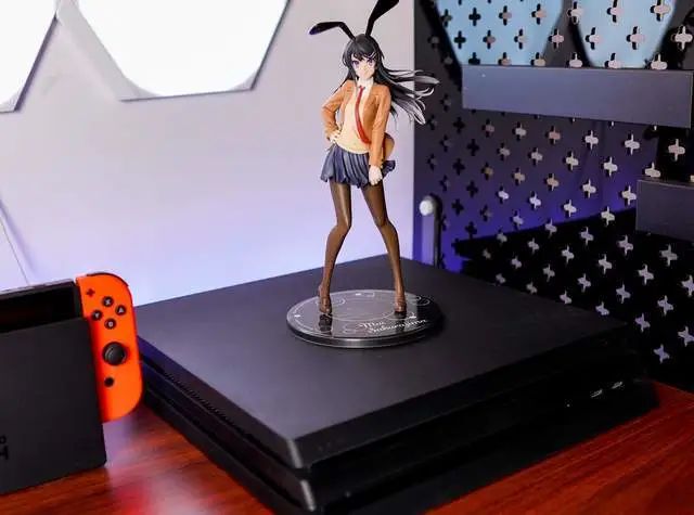 桌面设备的线缆就很麻烦,比如像幽灵峡谷作为主机:首先电源和显示输出就占了两根线,其次麦克风、摄像头、采集卡、键盘和耳机支架各占了一个 USB 接口。这些线缆就只能通过将主机横置,由桌子背面来隐藏了。说回幽灵峡谷,笔者手中这台幽灵峡谷的配置是 i7-9750H,RTX3060Ti,16 GB+512 GB。基本上常见的主流游戏开到 4K 分辨率还是能够畅玩的,后面会单独出一篇相关的内容。Switch 就不用多说了吧,最近新款 OLED 版已经出了,旧款续航版价格每天都在跌,纯为自己玩的话可以赶紧下单了。同样也是利用 TV 底座将线缆都遮住,正面只能看见设备本身。PS4 Pro 的视频和电源接口在同一侧,所以卧式立式均可。PS5 虽然已经出了一年,但是游戏应用也就还是那样,如果对画面要求不高完全可以来一台 PS4 Pro 过渡。