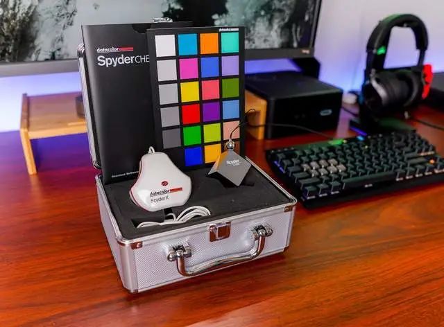 笔者虽然是市场开发岗,但日常工作经常有修图、剪视频和修改宣传册这些杂活,屏幕的色域和色准表现到位基本是上最基础的需求。尤其是零碎时间干活,会在笔记本屏幕和外接显示器之间来回切换,有的时候还会使用 MacBook Pro + 明基 SW240 那个小桌面。如果屏幕没有经过校色调试的话,多个屏幕之间切换使用很容易导致多次输出不一致,尤其是对于需要打印成册输出的内容而言直接就是灾难。一个屏幕的色域够广结果偏色特别严重,那不还是没法用么。一般我们认为不同型号的显示器可能会存在比较大的差距,而对于同型号都是默认没有差异的。这个认识其实是错误的,事实上即便是同型号和同批次面板的显示器也有可能存在轻微的差异,所以很多显示器的卖点就是出厂前有校色调试。不过出厂校色调试依旧是有限制的,考虑到拍摄需求和后续桌面还要升级双屏,趁着好价入手了 Datacolor 的 Spyder X 50 周年套装。金属小箱子替代了以前的纸质包装,看着那可是绝对够档次。为什么选择这个 50 周年套装呢?我们看看里面都有哪些设备,你就懂了。套装内包含红蜘蛛 X 校色仪,24 色色卡及立方灰卡,金属小箱子配合厚实的保护海绵能够在携带时对设备提供充足的保护。将色卡放在被拍摄位置进行首次拍摄,就能够作为基准,后续就可以通过软件进行取色调整了。要注意的是,这张有色卡的照片,只能作为当前光线状态制作预设的基准,如果光源产生了较大的变化就不能套用这个预设了。灰立方的主要作用则是调校白平衡,使用方法与色卡类似,对应照片可通过 Lightroom 里面的白平衡滴管直接取基准,就能套出相应的白平衡数据制作预设了。其顶部的镀铬小球能够帮助用户判断光源位置,而立方体的设计能够充分的避免阴影影响。由于色卡与立方灰卡主要是用于拍摄,更多的使用方法将在后续的内容中更新,让我们回到屏幕校色中来。套装内的校色仪是 Spyder X Elite,也就是我们常说的红蜘蛛。红蜘蛛的设计还是很简约的,除了品牌名和型号就只有一个光通量传感器了。本体还有一个 1/4 英寸标准螺孔,可以将校色仪安装在脚架上,从而对投影仪进行测试与校色。因为尺寸问题限制,除了像手机这样尺寸之外其他大尺寸显示设备,只要能够显示测试软件相应内容,就基本都能进行校色/测试。虽然校色仪的原理与设备十分专业,但是上手根本没有一点难度。软件安装过程不赘述,直接官网下载后,填写套装内带的激活码直接激活即可使用。在测试和校准前,我们要做到按照软件的要求一路设置下来即可校准/测试显示器,上手没有任何难度。校色仪可以只校准本机(渐进式助手),也可以对全部显示器进行统一校准(适用于整个工作室有多台显示器的情况),根据自身需求选择即可。比如之后桌面改双屏,就需要对显示器进行统一校准。主要是显示器需要使用一段时间后才能进行相关操作,而包括环境光、显示器自身参数与设置这些按照软件要求进行设置就好。盖板是将校色仪悬挂在显示器上用的,新品的话可能会比较紧,需要稍微使点劲才调节盖板和校色仪的相对位置。调整好长度后,按照软件提示将校色仪放置到位就能够开始我们的测试与校准了。整个校准过程完成后,软件会自动生成相应的配置文件,整个校准过程就算完成了。多台显示器校准则是可以使用工作室匹配模式,以一台显示器为基准对其他显示器进行操作,实际操作过程应该会在之后的桌面双屏改造中展示,敬请大家期待。除了校准显示器以外,我们也能够针对显示器的各项参数进行测试。为了方便测试,请务必摘除显示器的遮光罩。与校准的要求一样,预热显示器和各种设置一个都不能少,尽可能降低测试中使用环境造成的影响。