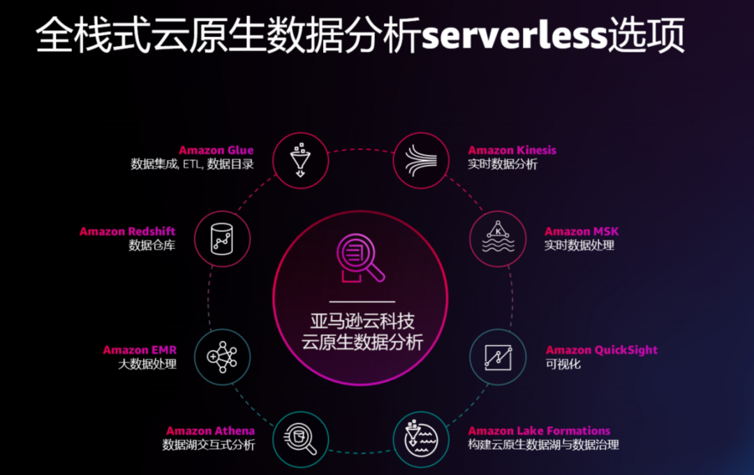 为了让构建方式更敏捷,在 2021 亚马逊云科技 re:Invent 大会上,亚马逊云科技宣布推出更多数据分析服务的无服务器版,借助无服务器的能力,让用户可以更敏捷地构建自己的数据存储、分析、智能应用解决方案。