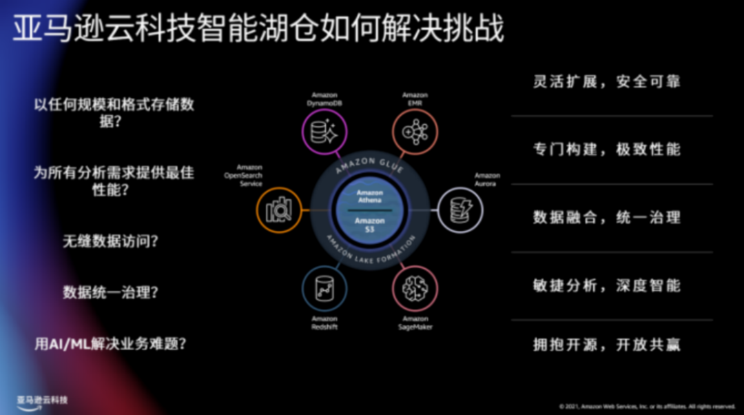 正如 Yannick Misteli 提到的一样,近些年来,底层的技术创新推动业务层的改变,而业务层的诉求也倒逼底层技术的进步。游戏规则正在技术升级中改变。如今,“智能”是绝大多数技术的演进目标。在亚马逊云科技的“智能湖仓”架构中,也将“智能”提到了一个相当重要的位置。