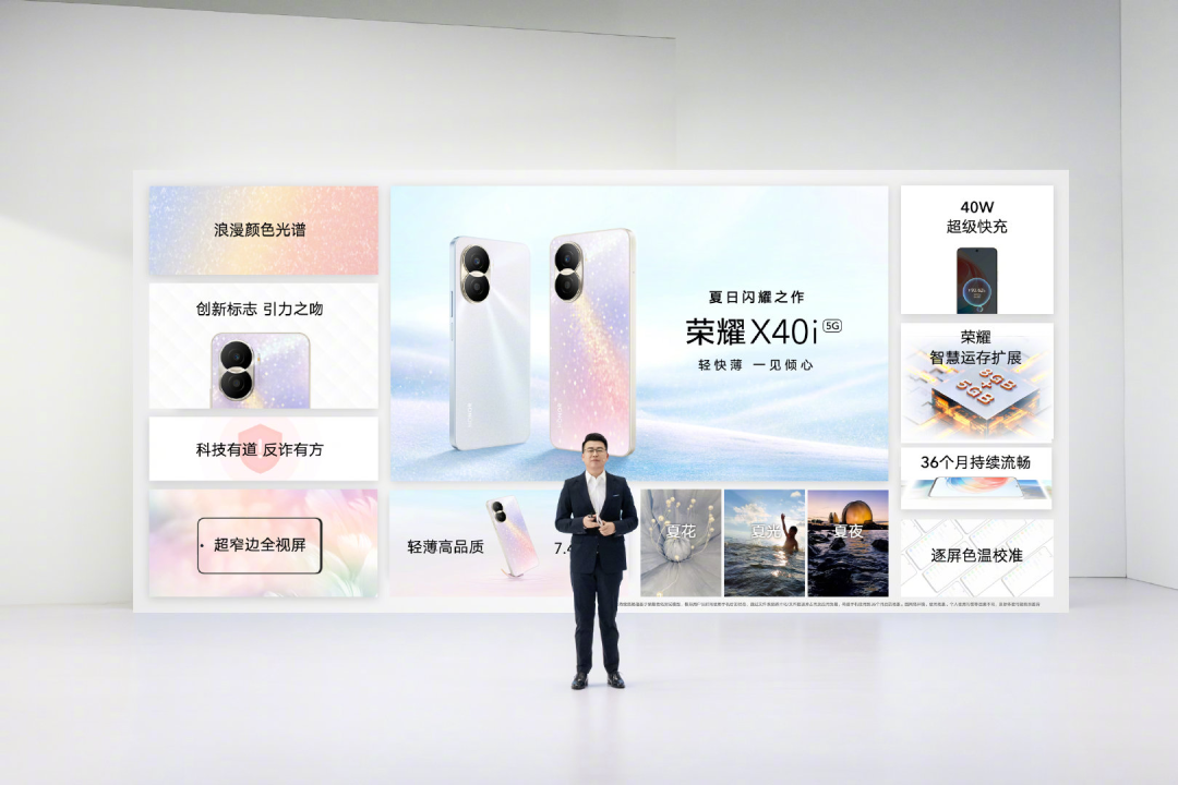 充电方面,该机拥有 40W 超级快充,配合智能节电引擎,充得快,用得久;借助智慧内存扩展技术,8GB 等同扩展至 13GB、12GB 等同扩展至 19GB;全新反诈功能带来全方位的隐私保护,守护用户的财产与信息安全;影像部分,荣耀X40i 搭载 5000 万像素主摄。