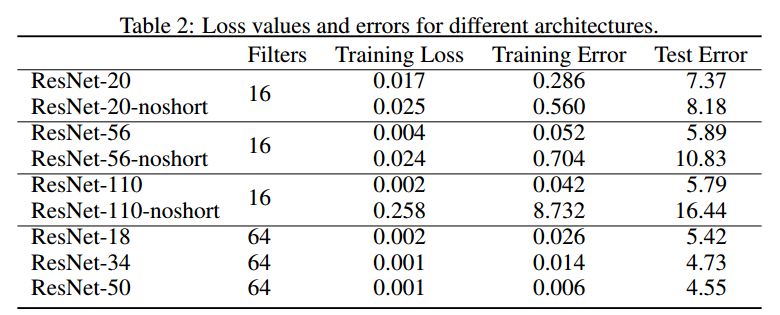 表 2:不同架构的损失值和误差。