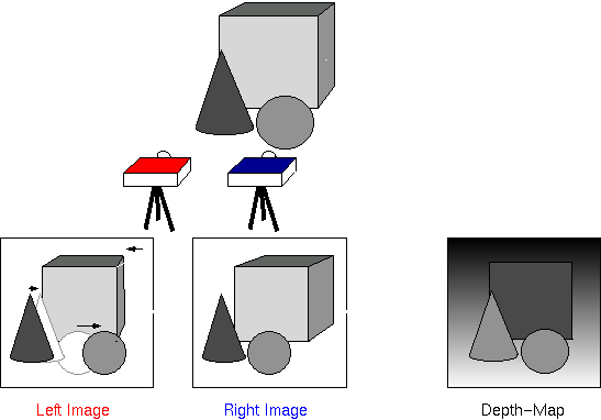 双目视觉使用了多个相机,并对感知目标位置的转移进行了评估,来计算深层信息