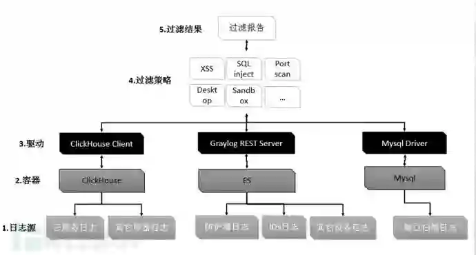 所以这些工作的第一步,就是将这些数据都放到合适的容器了里,数据库还是很多的,这里特别要说的是clickhouse,clickhouse是用来分析用户行为的,用于安全领域也是可以有的。