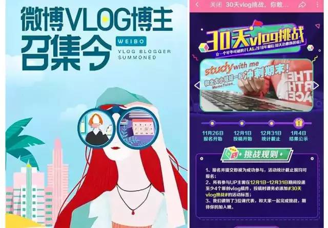 2018年9月,微博推出了Vlog招募计划,腾讯Yoo视频宣布补贴Vlogger,阿里上线了名为鹿刻的短视频app;12月,b站更是直接开展“30天Vlog挑战”,野心清晰:培养用户生产习惯。