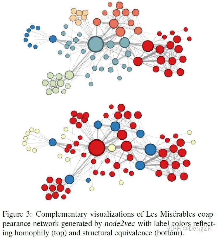 但事实上,论文中给出的结论却是 DFS擅长学习网络的同质性,BFS擅长学习网络的结构性。从论文里的 Figure 3 中我们可以直观地进行观察: