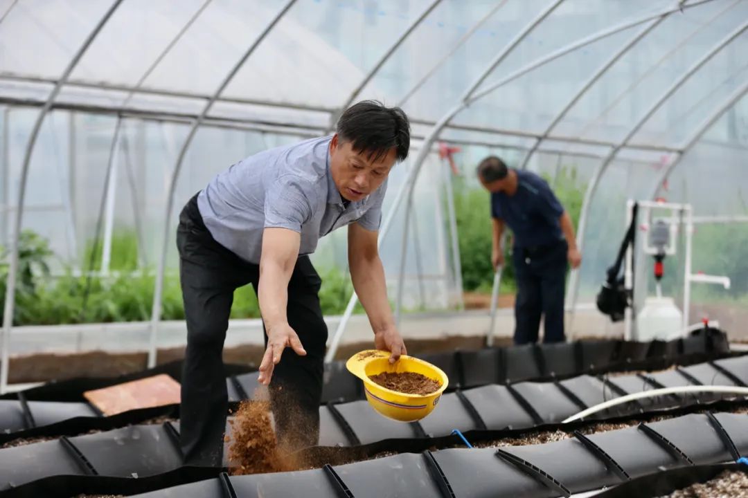 ▲艳九天巾帼队的孙郁晴,正在比赛基地中准备草莓定植用的基质、肥料等物资。摄影/穆功