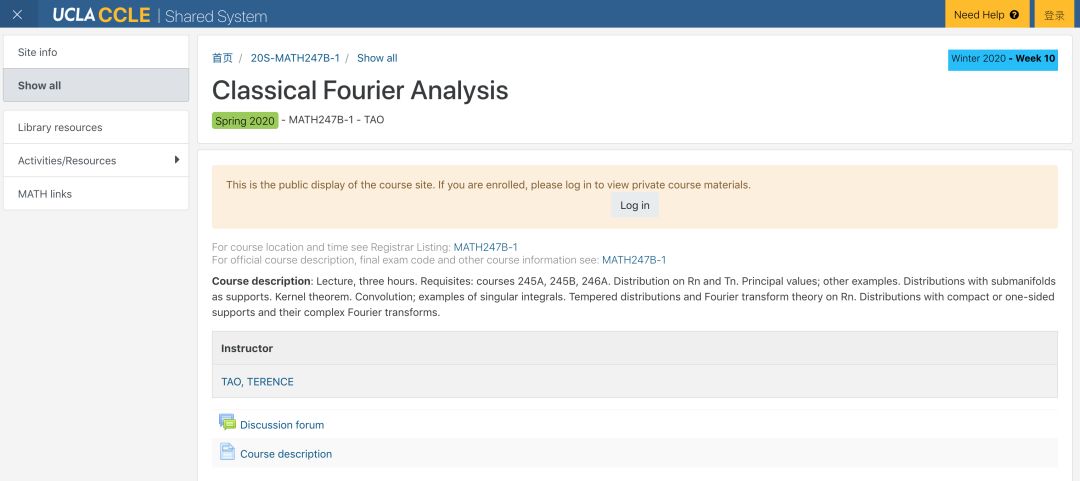 课程主页:https://ccle.ucla.edu/course/view/20S-MATH247B-1
