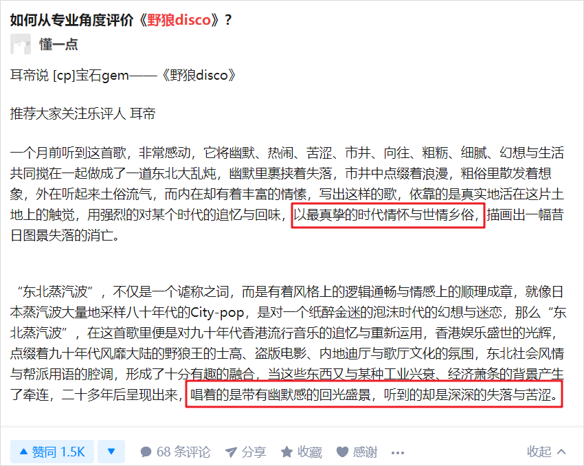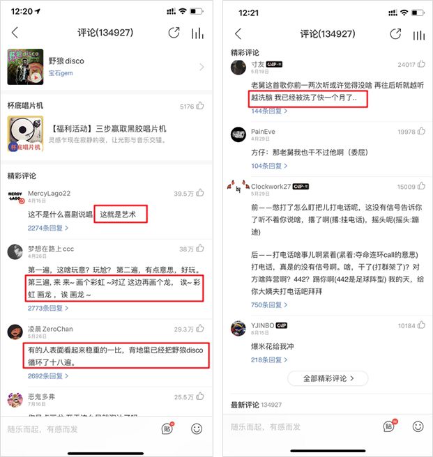《野狼disco》在网易云音乐上曾一度占领热搜榜第一,超过 13 万的评论,清一色好评,热评第一道出了这首歌火爆背后的真谛: