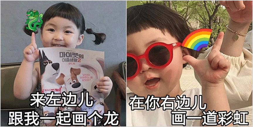 来,左边跟我一起画个龙,在你右边划一道彩虹……