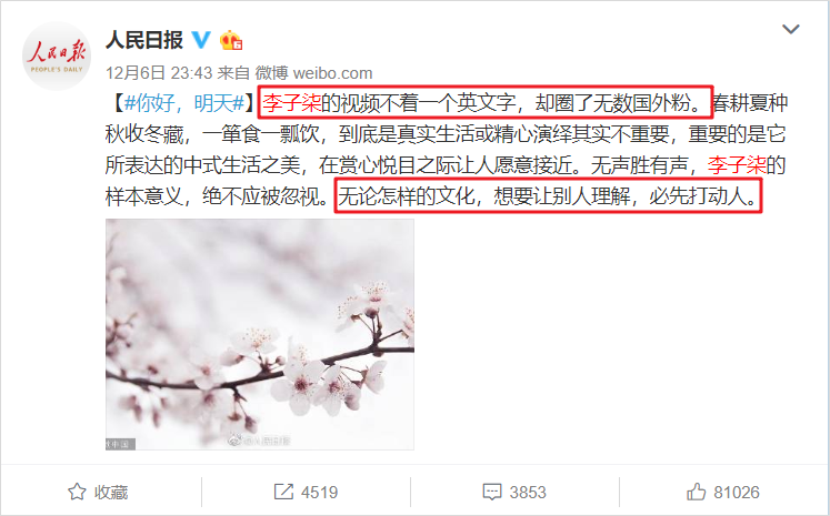 除此之外,李子柒在外网的火爆,让各国网友了解中国的文化同时,也激起了我们的民族自豪感。