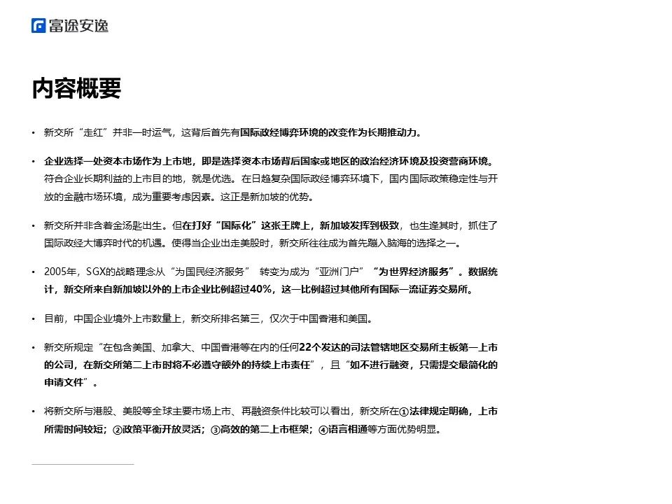 基于以上背景,富途安逸学苑推出《境外上市微报告之重新发现新加坡交易所》,以解答中国企业对新交所的诸多关切。