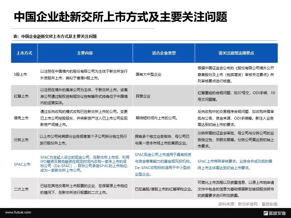 在实际操作上,对于中国企业,主要有S股上市,红筹上市,借壳上市,分拆上市,SPAC上市,二次上市,REITS上市等方式。它们分别更适宜于不同类型和发展阶段的企业。也有各自不同的需要重点关注的政策和法律合规要点。