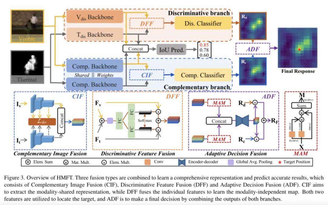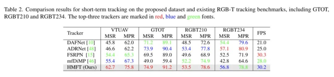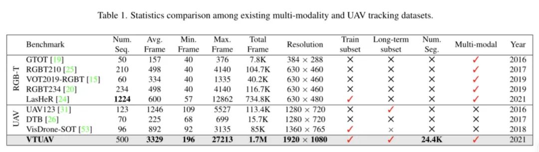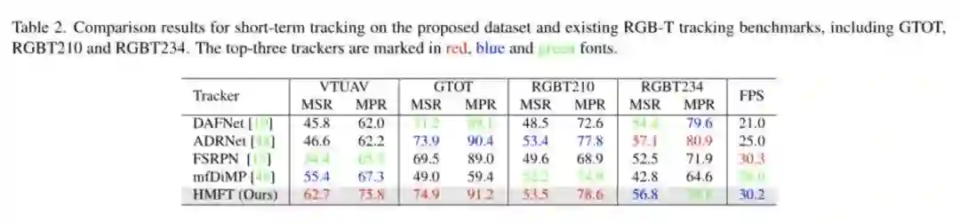 这篇文章中作者构建了一个用于可见热UAV跟踪(VTUAV)的大规模高分辨率的帧级数据集,其中包括500个分辨率为1920∗ 1080图像序列帧对,很好的弥补了目前RGB-T工作中缺少数据的问题。此外本文还提出了一套结合RGB与Thermal模态信息的融合策略(HMFT)。 >>加入极市CV技术交流群,走在计算机视觉的最前沿