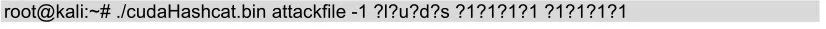 ● ./cudaHashcat.bin:表示调用cudaHashcat命令。