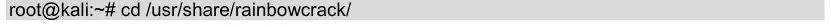 使用rtgen工具生成彩虹表,具体操作步骤如下所示: