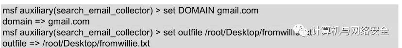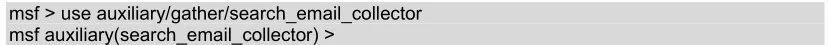 (3)使用辅助模块search_email_collector。执行命令如下所示: