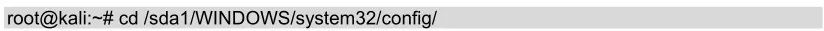 (3)切换目录,进入到Windows SAM文件的位置。执行命令如下所示: