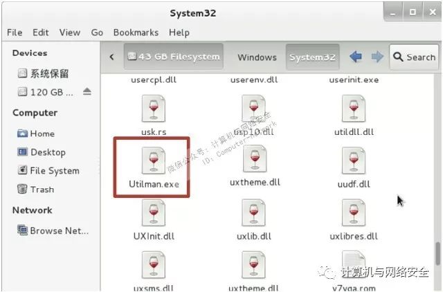 (5)在该文件夹中找到 Utilman.exe 文件,将该文件重命名为 Utilman.old。然后复制cmd.exe文件,并将其文件名修改为Utilman.exe。
