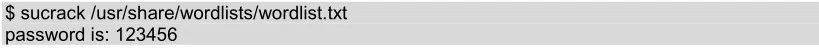物理访问攻击与提升用户的权限类似。即当一个普通用户登录到系统中,破解本地其他用户账户的密码。在Linux中,普通用户可以通过su命令代替其他用户执行某些操作,意味着该用户能够在Linux/Unix系统中提升自己的权限。在这种情况下,可以使用SUCrack工具暴力破解使用su的本地用户账户的密码,来完成后续的渗透攻击操作。下面介绍使用SUCrack工具攻击该用户。