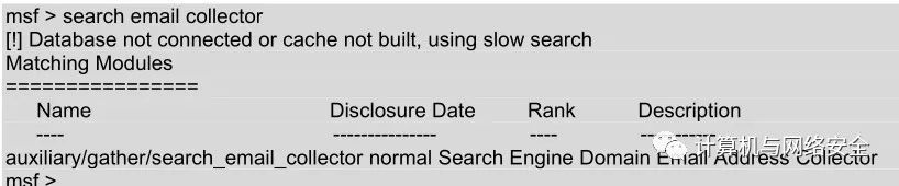 执行以上命令后,在输出结果中看到以上信息,就表示存在 search_email_collector模块。