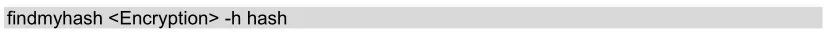 在Kali Linux中,可以使用findmyhash工具破解LM Hashes密码。其中,findmyhash命令的语法格式如下所示: