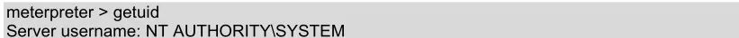 从输出信息中,可以看到当前用户已经是系统权限。此时,就可以进行其他操作了。